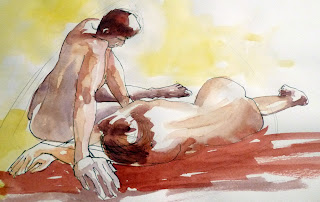 Des lignes, des courbes, des rondeurs qui me plaisent... Une belle écriture que celle de vos croquis... Ils dégagent également une agréable sérénité dans vos personnages et leurs attitudes. Gros bisous
